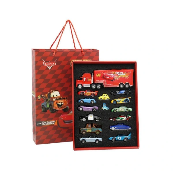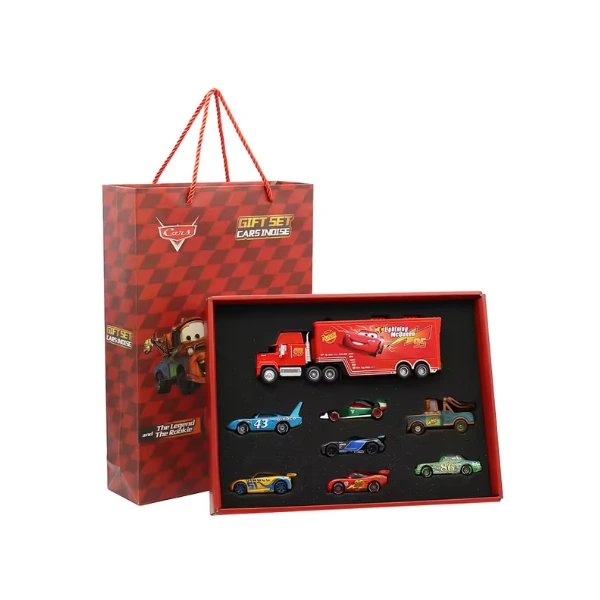 Conjunto Disney Pixar Carros – 8 ou 15 Peças | Relâmpago McQueen, Jackson Storm, Caminhão Mack e Mais | Modelos de Carros Diecast em Metal + Caixa de Presente